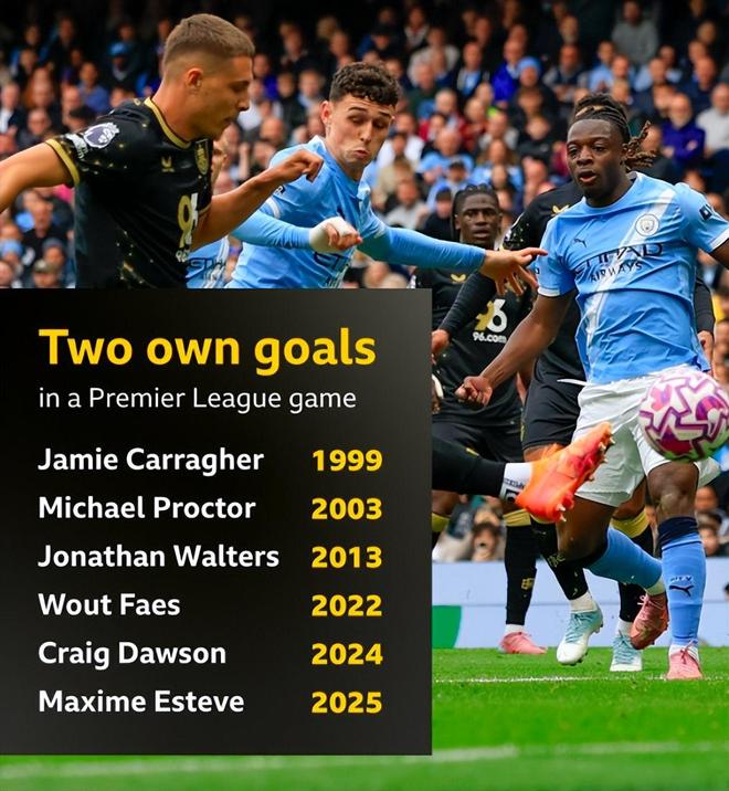 他成为英超联赛历史上第六位在同一场比赛中打进两记乌龙球的球员,也是自2024年12月克雷格·道森代表狼队对阵埃弗顿上演乌龙双响后,第一位做到这一点的球员。