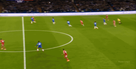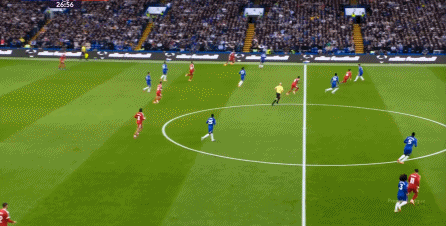 理论上,遇到切尔西这样连续换上替补后卫的时候,就应该直接将压力施加到后卫线身上,通过不断对抗、冲刺来打这些替补球员跟不上节奏的问题,但利物浦的前场球员恰好不是这种类型的进攻球员,所以在下半场末段,利物浦已经出现了弹不出去的问题: