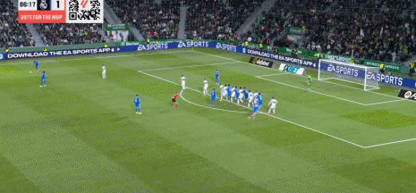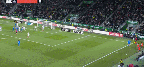第80分钟,扳平比分,赫伊森禁区内破门,皇马1-1