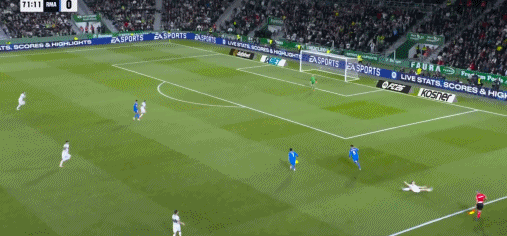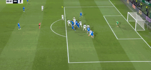 第90+4分钟,卡马文加传到门前,贡萨洛铲射没有踢到